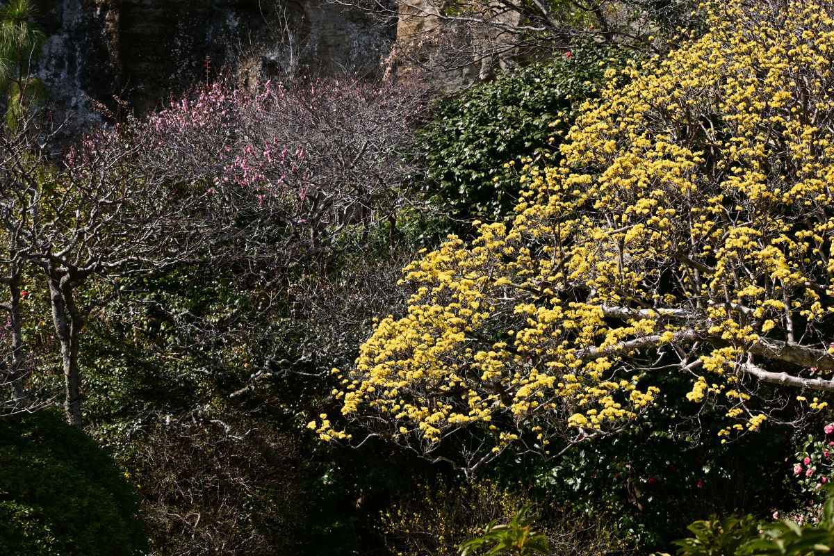 毎年2月から3月にかけて本堂裏の枯山水庭園にあるサンシュユ(山茱萸)が花を咲かせます。
